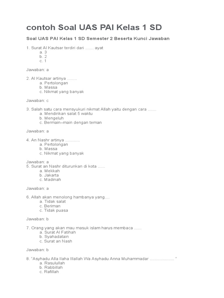Contoh soal mid penjasorkes kelas 1 sd semester 2