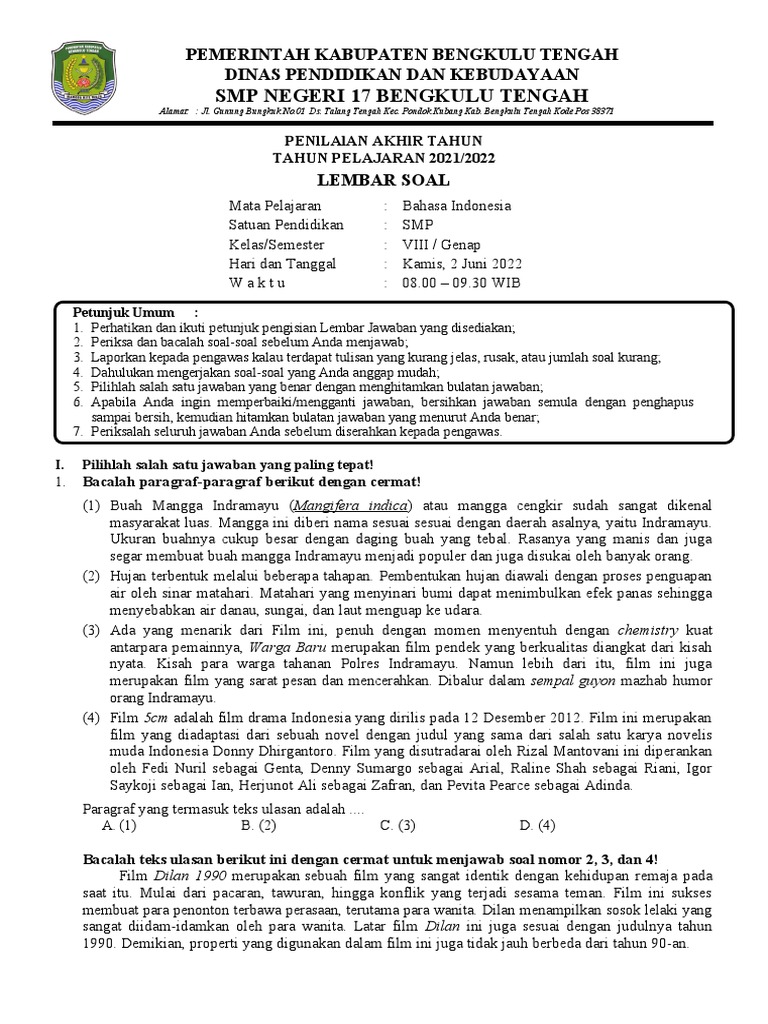 Penilaian Akhir Tahun (PAT) adalah momen krusial bagi siswa kelas 9 untuk menunjukkan sejauh mana pemahaman mereka terhadap materi yang telah dipelajari sepanjang semester 2 Kurikulum 2013. Khususnya dalam mata pelajaran Bahasa Indonesia, penguasaan materi menjadi kunci keberhasilan. Soal PAT Bahasa Indonesia Kelas 9 Semester 2 K13 dirancang untuk menguji berbagai aspek kemampuan berbahasa, mulai dari pemahaman bacaan, tata bahasa, kesusastraan, hingga kemampuan menulis dan berbicara (meskipun seringkali yang diujikan dalam bentuk tertulis).