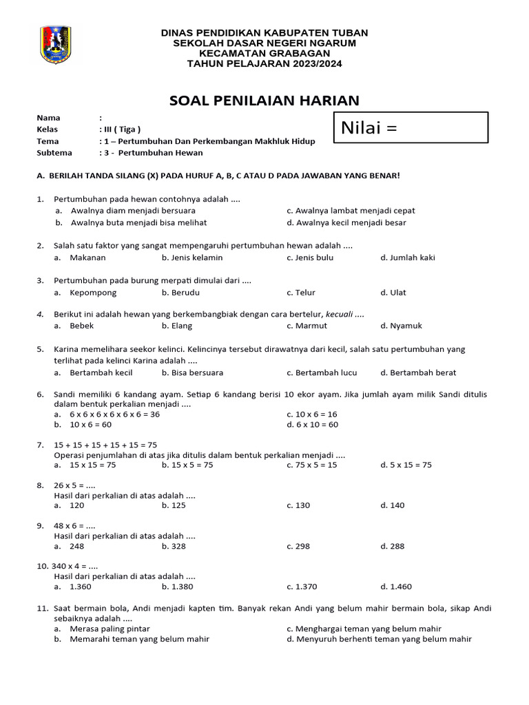Simulasi Ujian yang Efektif: Soal-soal PAS yang diunduh berfungsi sebagai simulasi ujian yang sesungguhnya. Dengan mengerjakan soal-soal ini, siswa dapat merasakan tekanan waktu, memahami jenis pertanyaan yang sering muncul, dan mengukur tingkat pemahaman mereka terhadap seluruh cakupan materi Tema 1. Ini membantu mengurangi rasa cemas saat ujian sebenarnya.
